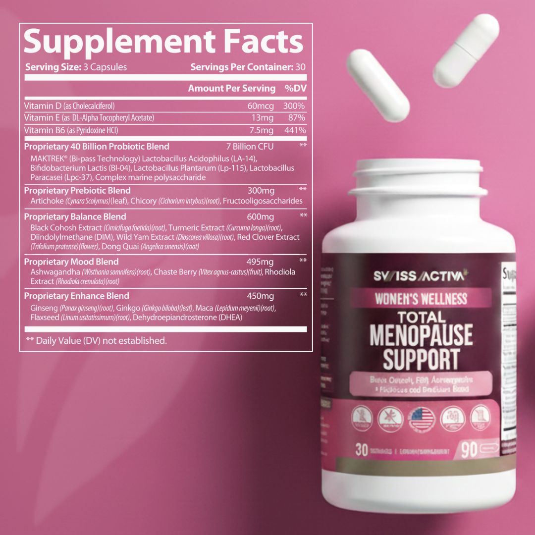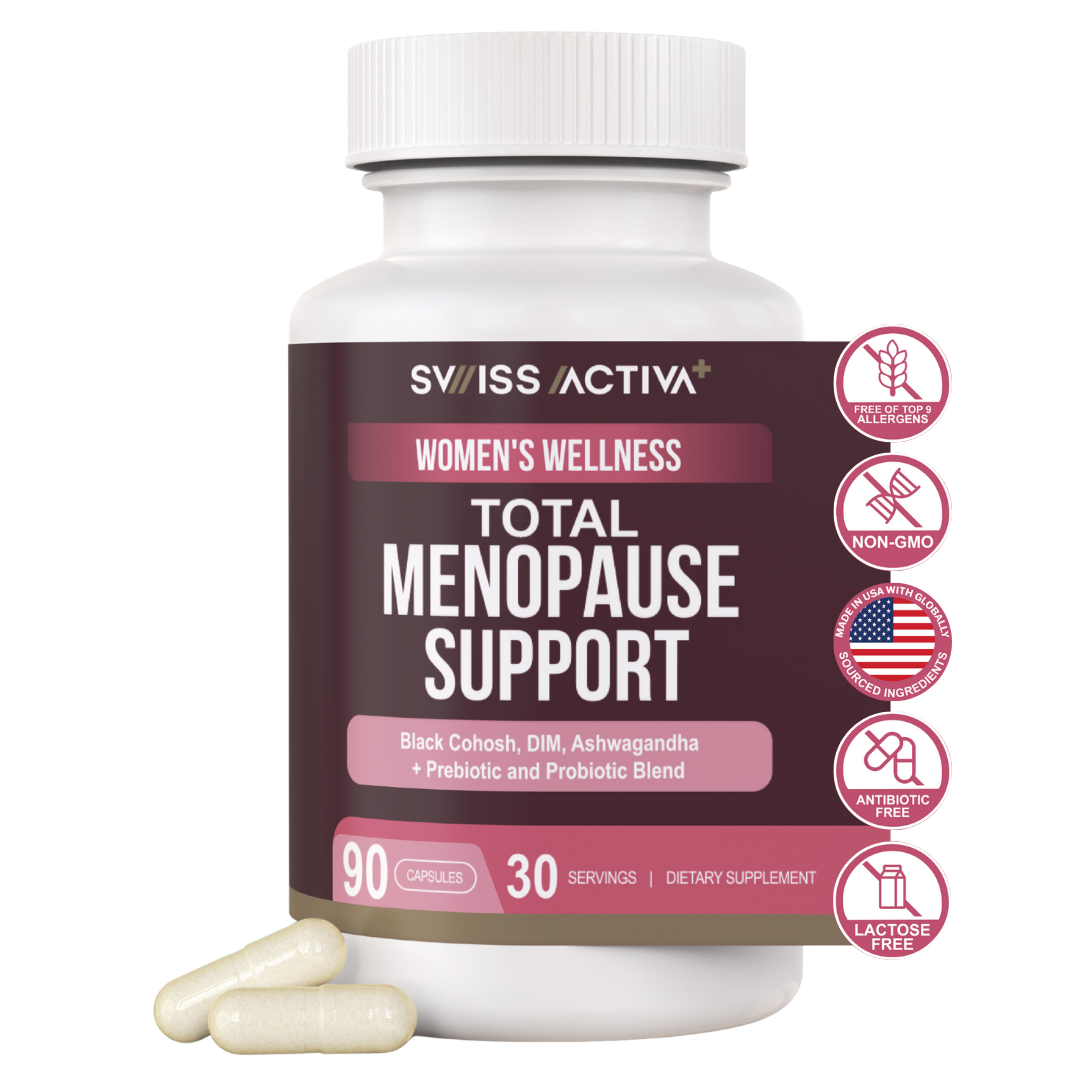 No. Total Menopause Support is 100% hormone-free. Instead of using synthetic hormones or HRT, it uses clinically respected botanicals like Black Cohosh, DIM, Maca, and Red Clover to support the body’s natural hormone regulation. These ingredients help reduce estrogen dominance and support endocrine health without disrupting your body’s own rhythms or requiring prescriptions.
