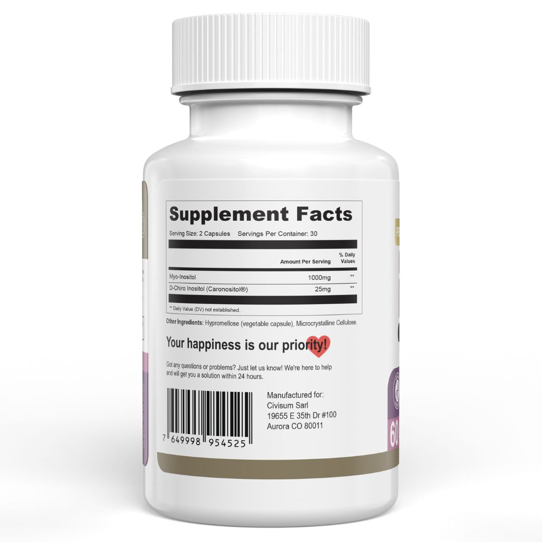 Each serving provides 1000 mg of Myo-Inositol + 25 mg of D-Chiro Inositol to effectively support menstrual regularity, fertility, and metabolic health.
